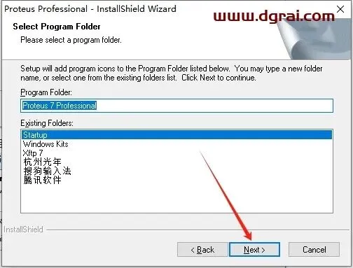 选择开始菜单文件夹,直接Next