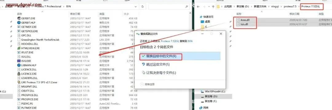 打开Proteus 7.5汉化文件夹,将里面的2个汉化补丁复制到软件安装目录下粘贴-替换