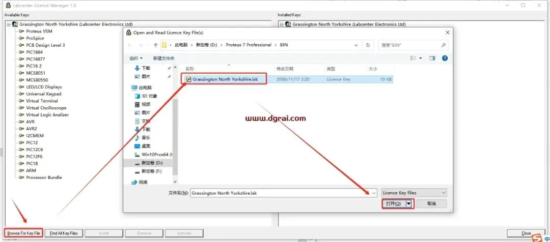 点击“Browse For Key File”,弹出对话框,选择Grassington North Yorkshire.lxk打开