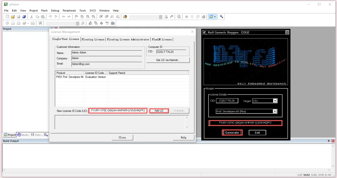 15、点击“Generate” 生成的激活码复制到NewLicense ID Code后面的框里 ,点击“Add LIC”
