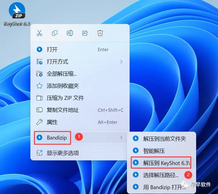 1、下载KeyShot 6.3软件安装包到电脑上,右键选择【解压到KeyShot 6.3\】