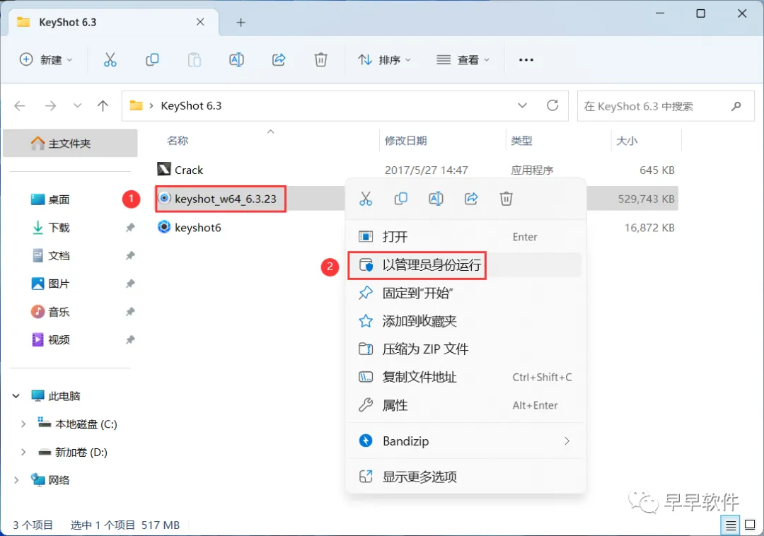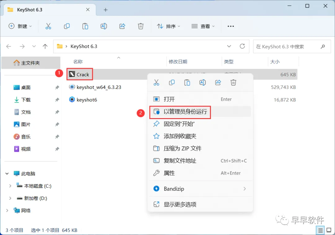 15、回到KeyShot 6.3文件夹,找到【Crack】程序,右键选择【以管理员身份运行】它