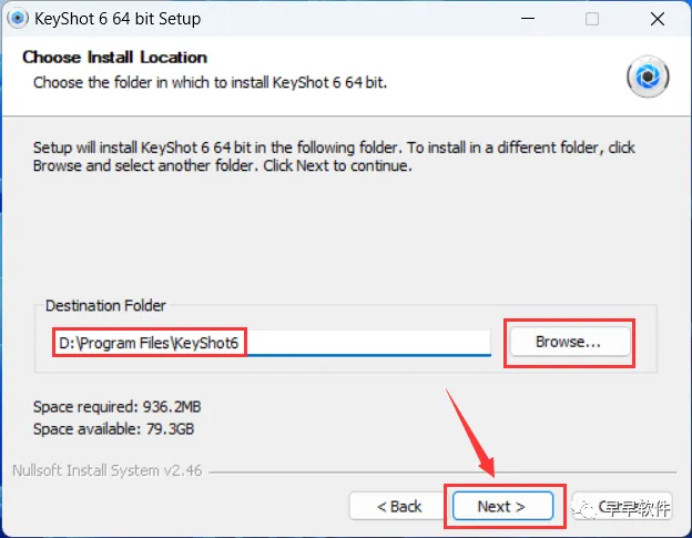 7、软件默认安装在C盘,可自定义更改软件安装位置,这里小编选择安装在D盘;点击【Next】