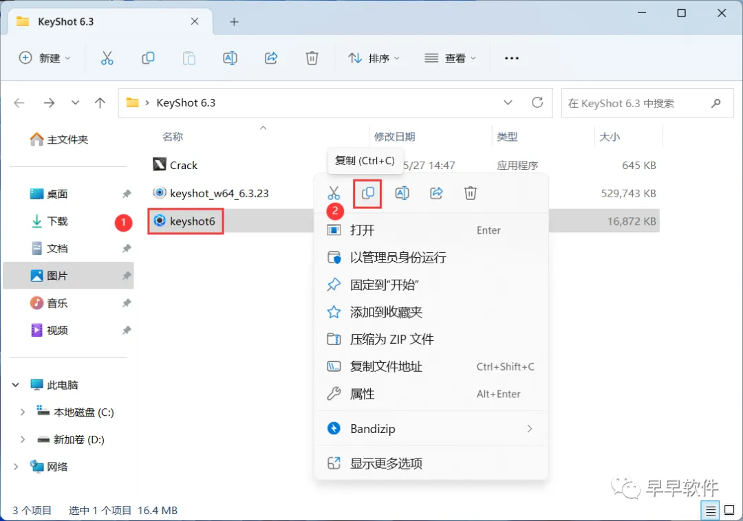 11、回到KeyShot 6.3文件夹,找到【KeyShot6】程序,再右键点击【复制按钮】