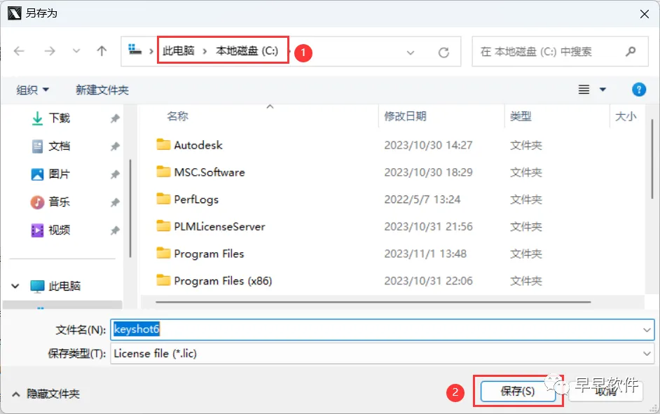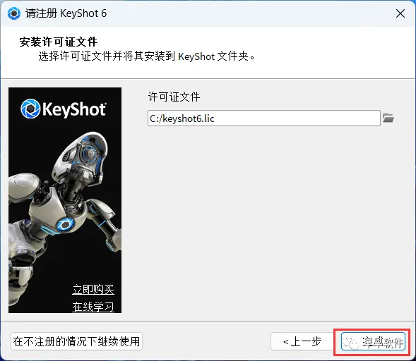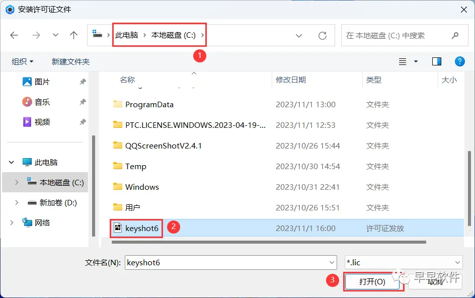 22、选择路径到C盘,找到并选中【Keyshot6】程序,再点击【打开】