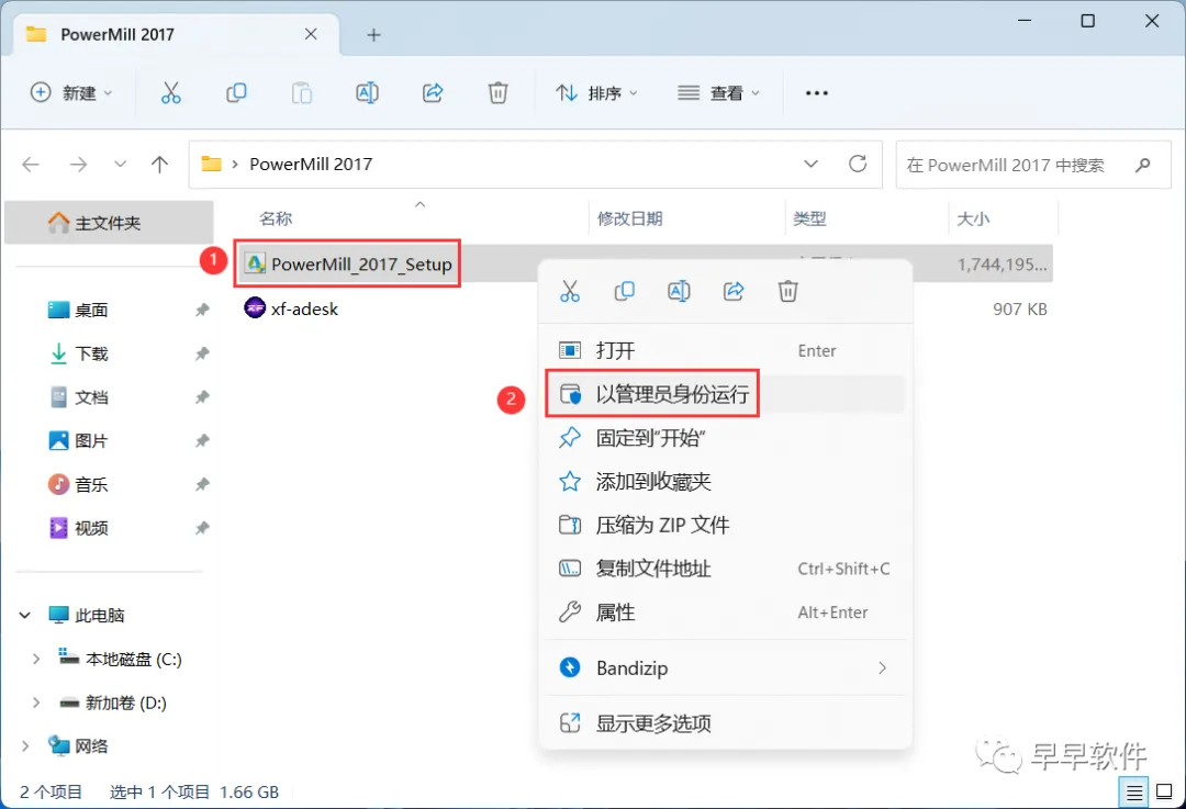 3、找到【PowerMill_2017_Setup】应用程序,右键选择【以管理员身份运行】它