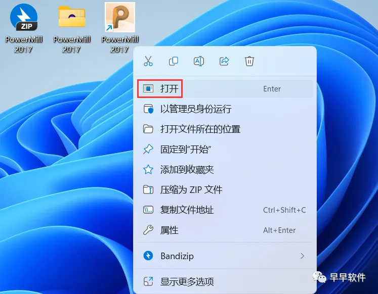 11、回到桌面,右键桌面上的【PowerMill 2017软件图标】,点击【打开】