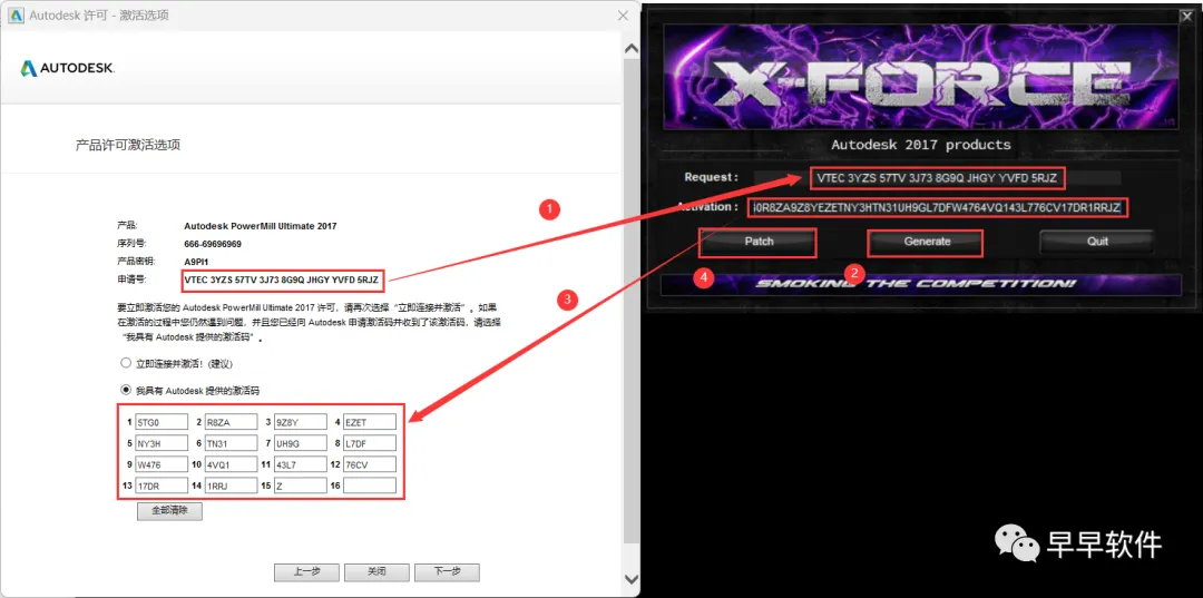 21、打开软件界面,将软件的【申请号】填入到程序的【Requset】内,再点击【Generate】,将程序的【Activation】填入到软件的【激活码】内,再点击【Patch】