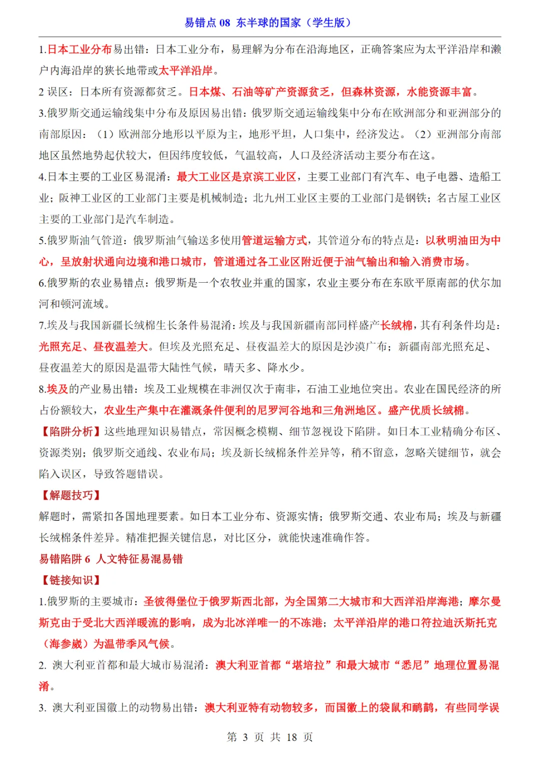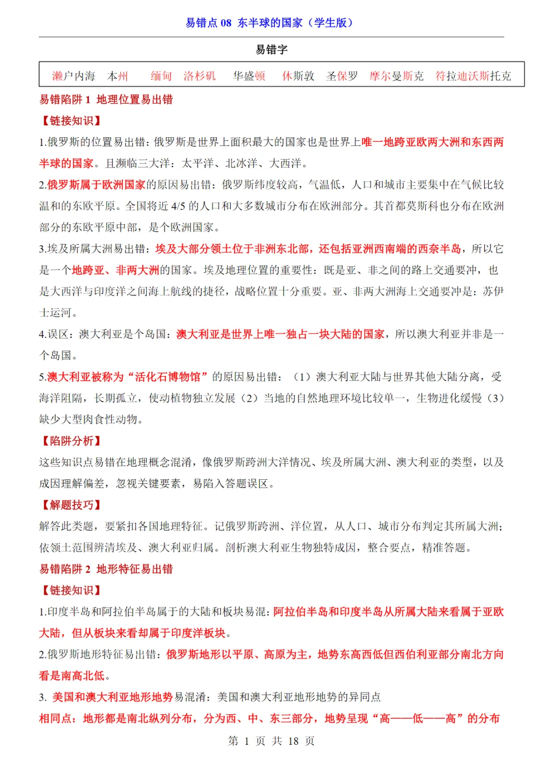 当前位置:首页>免费下载>【免费下载】会考专项地理易错点08 东半球的国家 电子版可打印