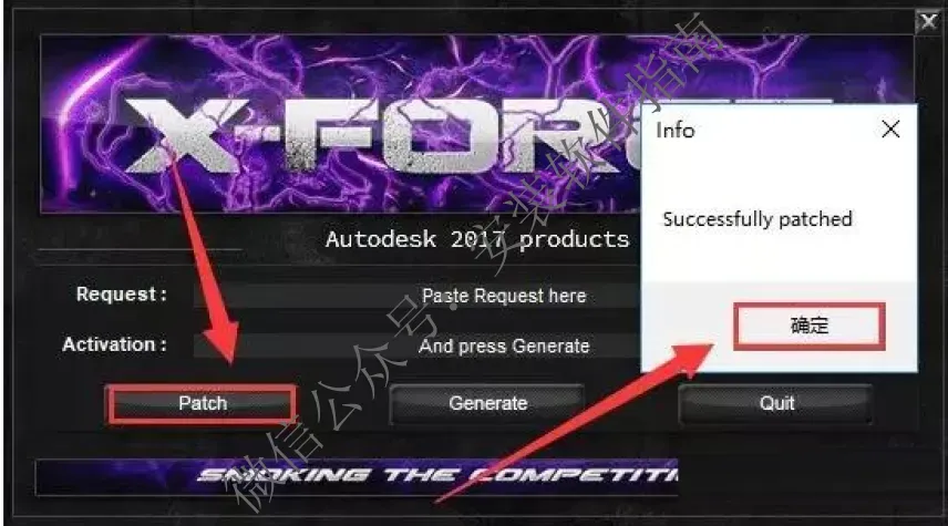 2、点【Generate】产生激活码,将【Activation】对应的激活码复制左边【我具有...】对应框中并粘贴,,注意:粘贴的字母必须完整,在15个框中自动填充一个字母才算正确无误;