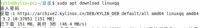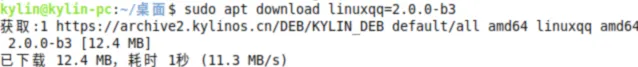 示例1:下载“linuxqq”最新版本,输入:sudo apt download linuxqq