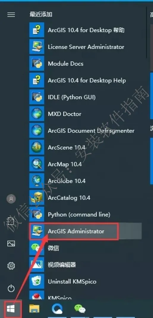 39.继续点开始菜单,在最近添加内找到并打开《ArcGIS Administrator》程序