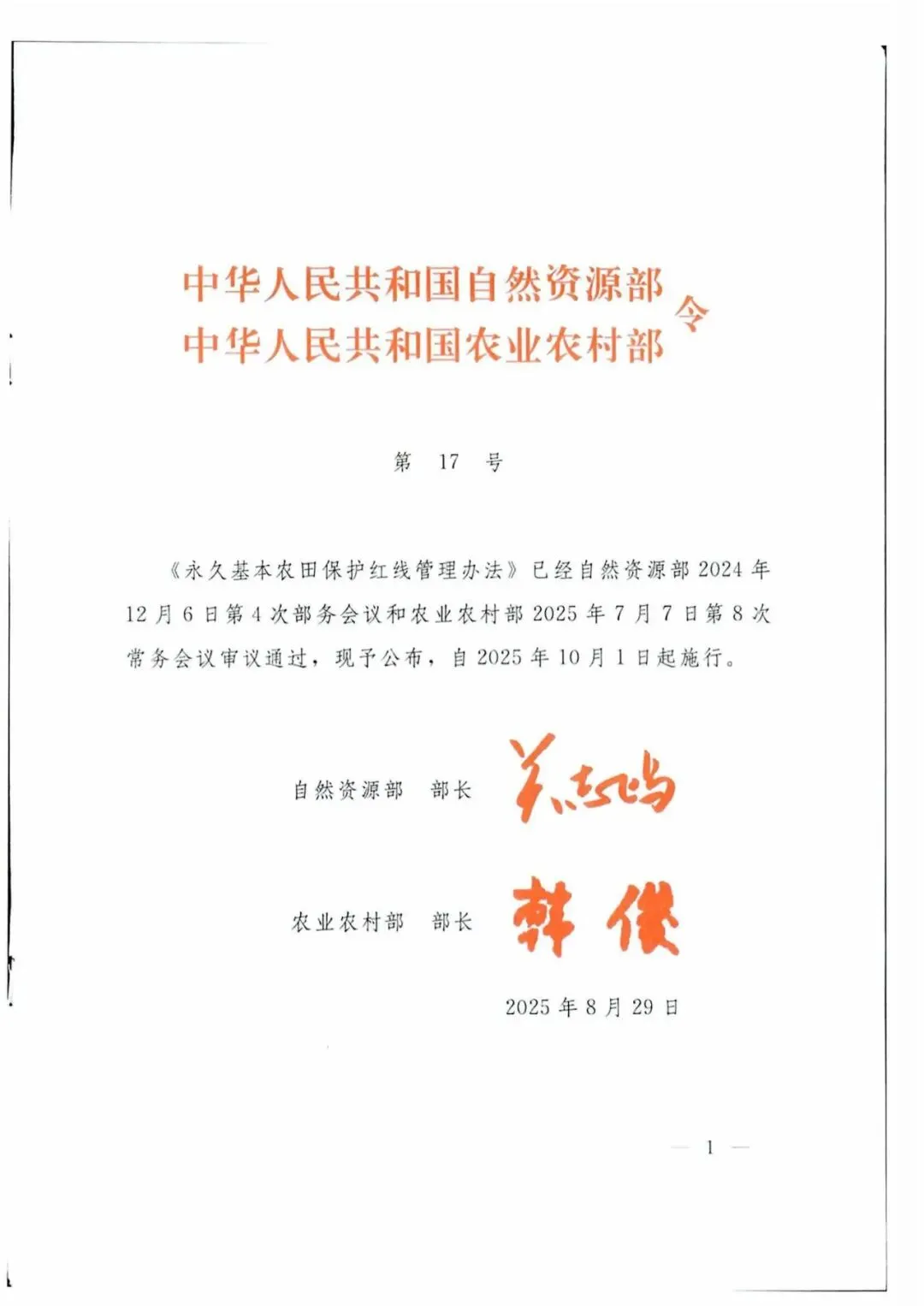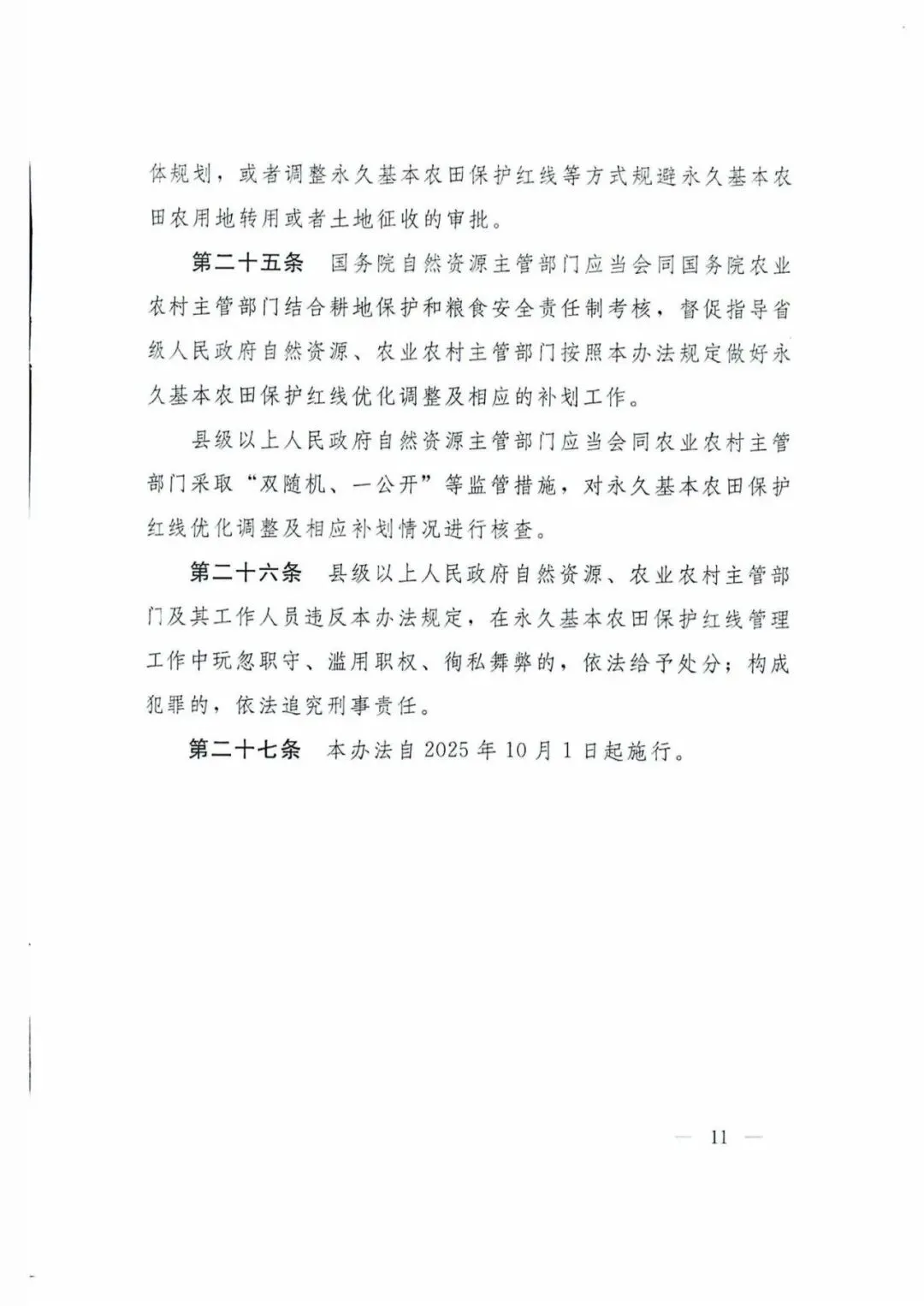 原文下载:《永久基本农田保护红线管理办法》-自然资源部、农业农村部17号令(2025)