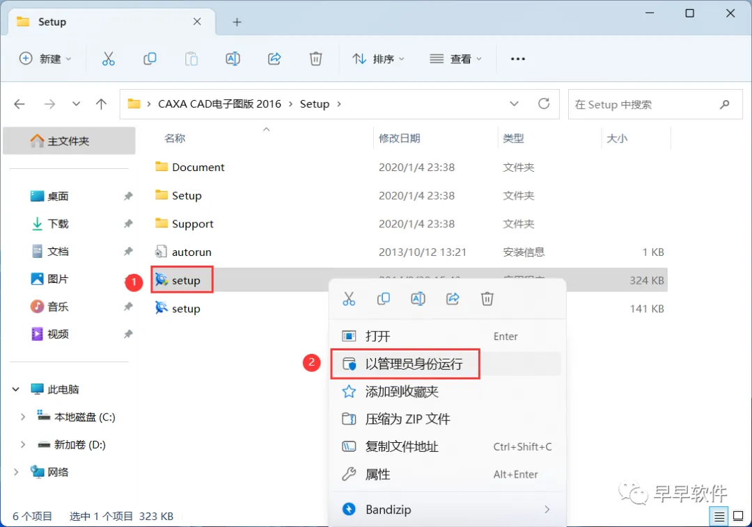 4、找到【setup】应用程序,右键选择【以管理员身份运行】它