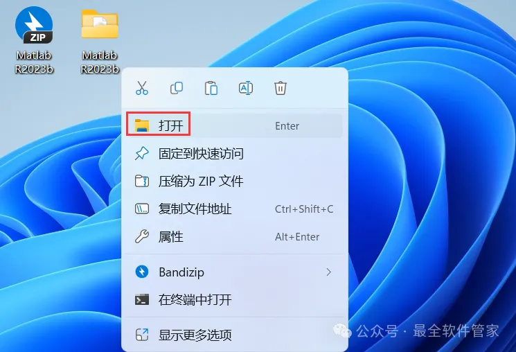 25、回到桌面,右键桌面上的【Matlab R2023b软件图标】,点击【打开】