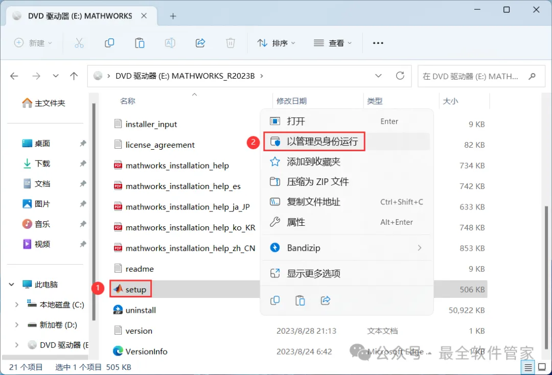 4、找到【setup】应用程序,右键选择【以管理员身份运行】它