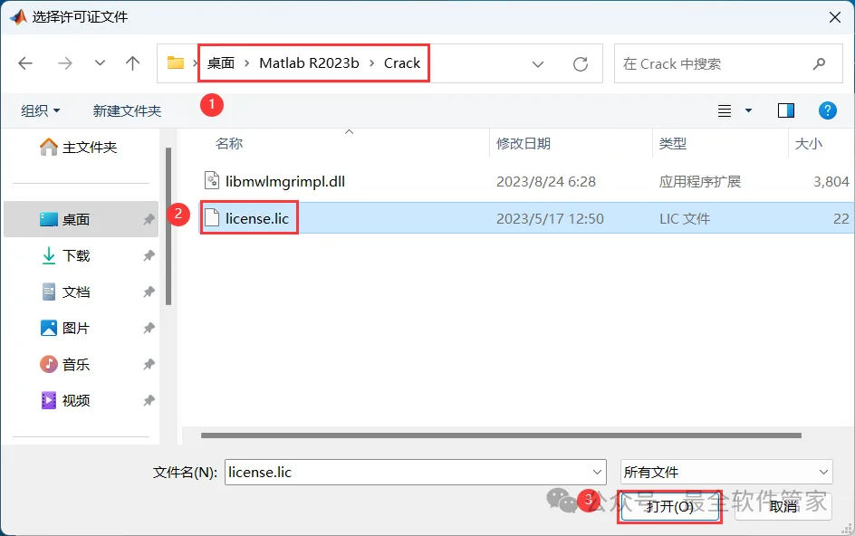 9、找到并选中安装包Crack文件夹下的【license.lic】,再点击【打开】