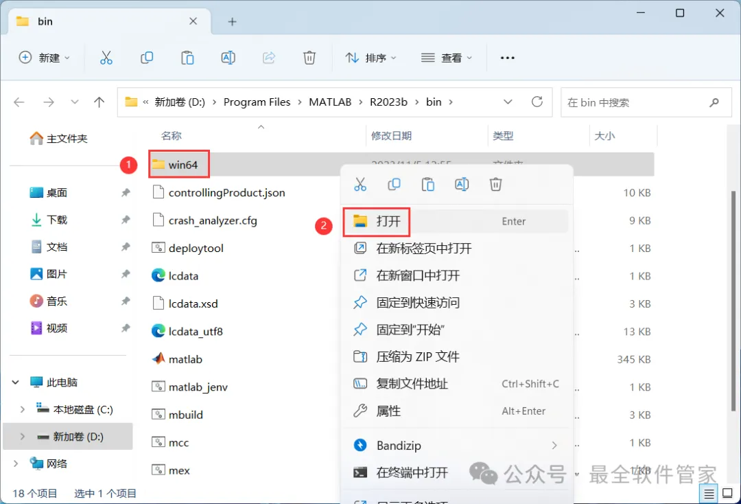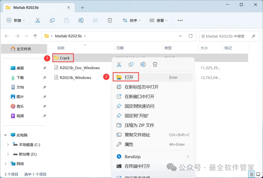17、回到Matlab R2023b文件夹,找到【Crack】文件夹,右键【打开】它