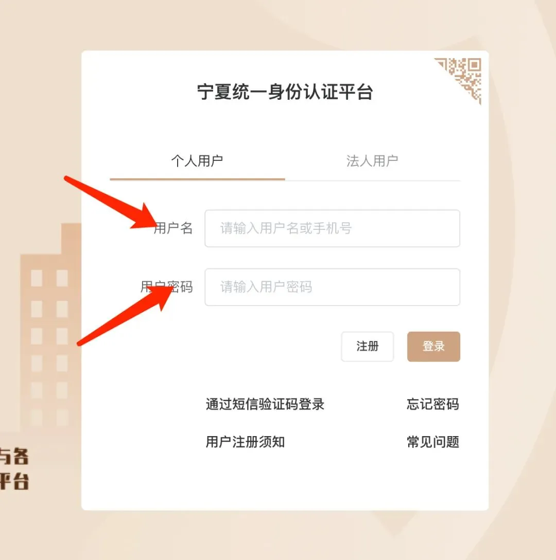 第二步:在宁夏统一身份认证平台,填写用户名,用户密码。