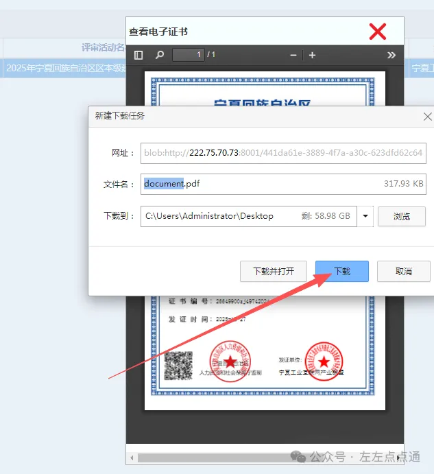 第五步:点击查看电子证书,即可下载使用(如图箭头所示)。