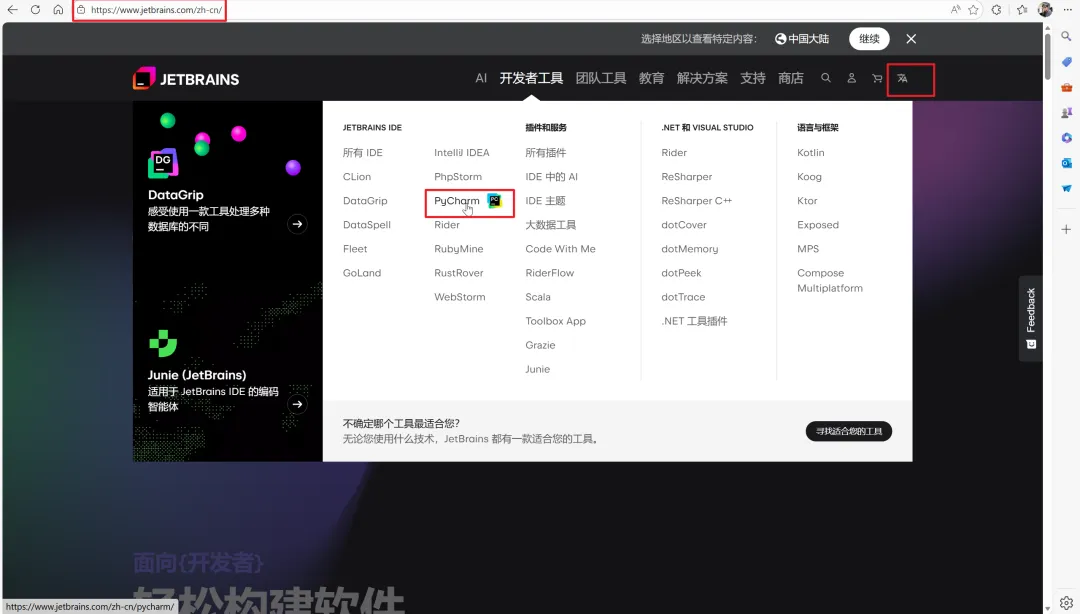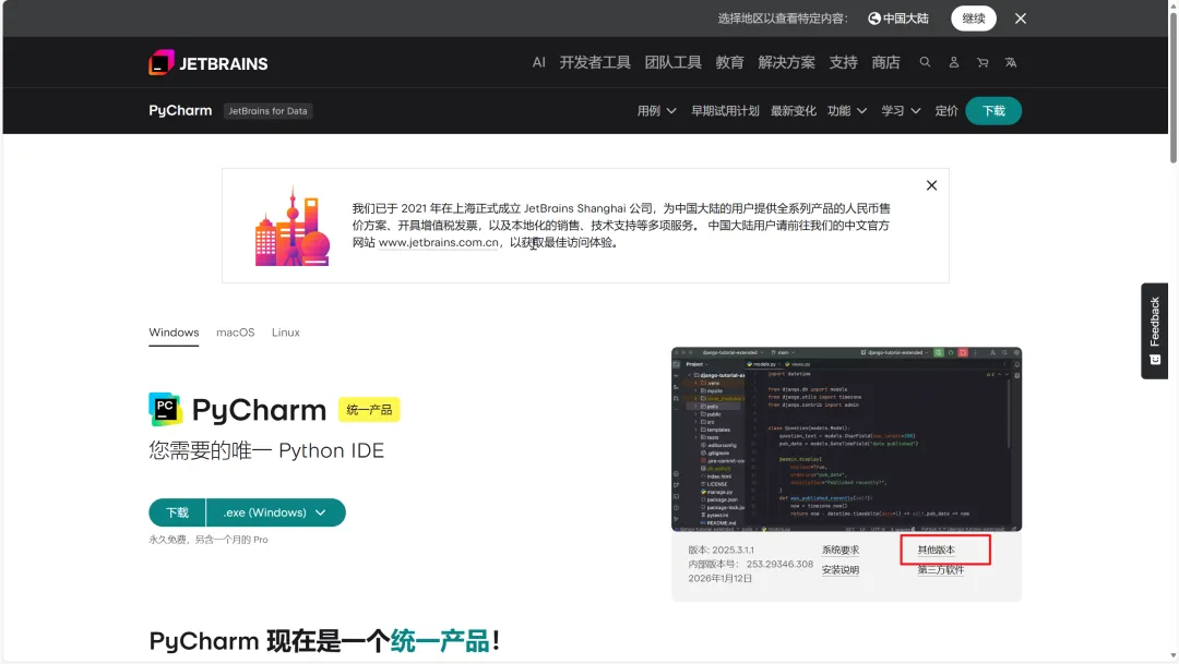 PyCharm集成开发工具(IDE), 是当下全球开发者, 使用最频繁的工具软件绝大多数的Python程序, 都是在PyCharm工具内完成的开发PyCharm软件官方网站下载地址