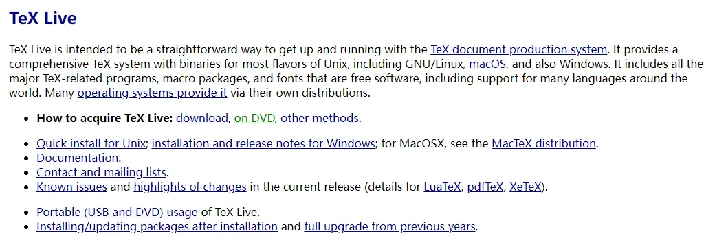 进入链接:https://tug.org/texlive/ 开始操作