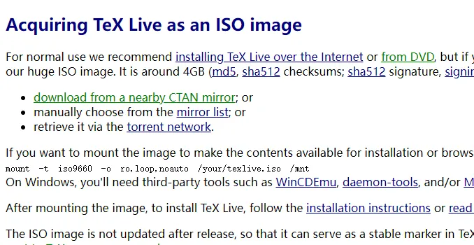 装载下载好了的Tex Live安装包分以下几种情况: