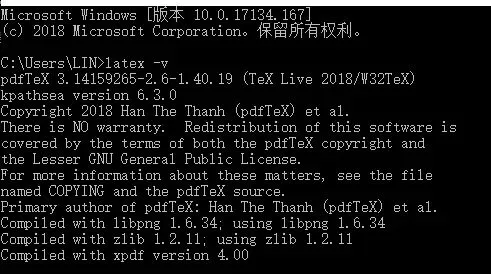 同理,如果输入”latex -v”,则会输出latex的版本信息: