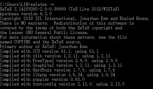 类似的,还有“xelatex -v”: