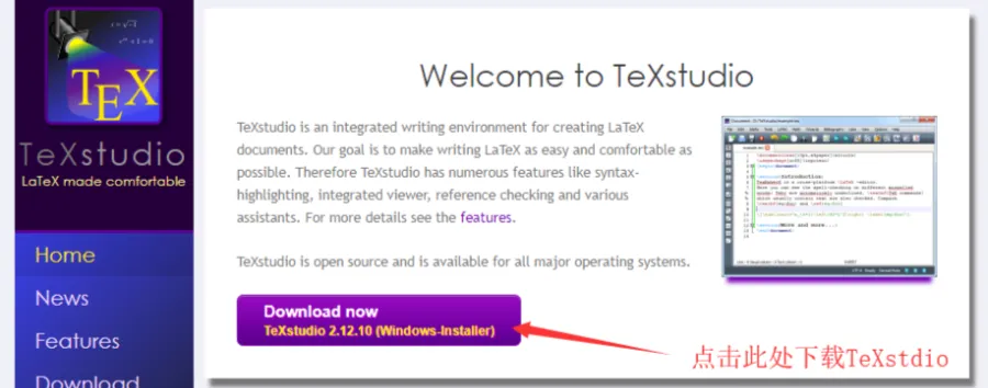 点击http://texstudio.sourceforge.net/ ,下载图形化界面。