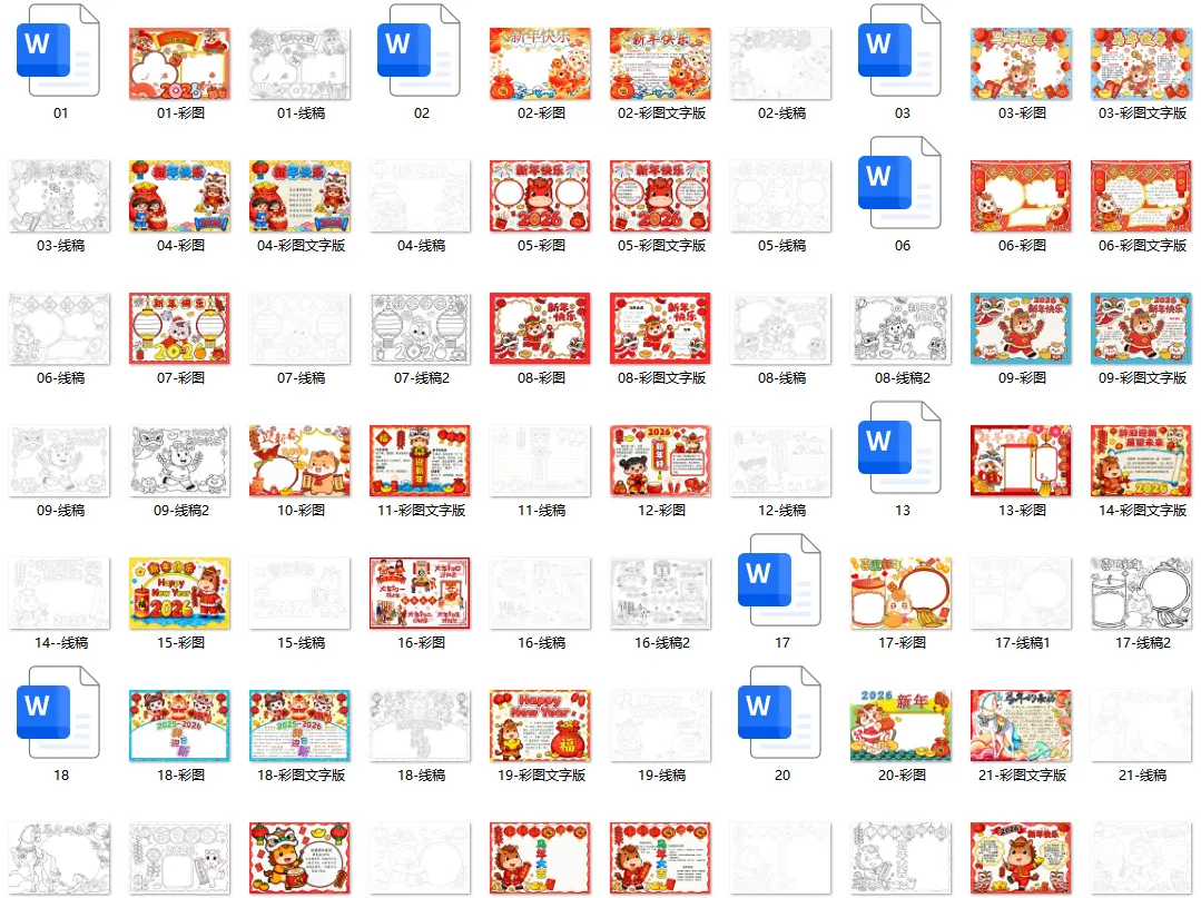 精美线稿+新年文字素材