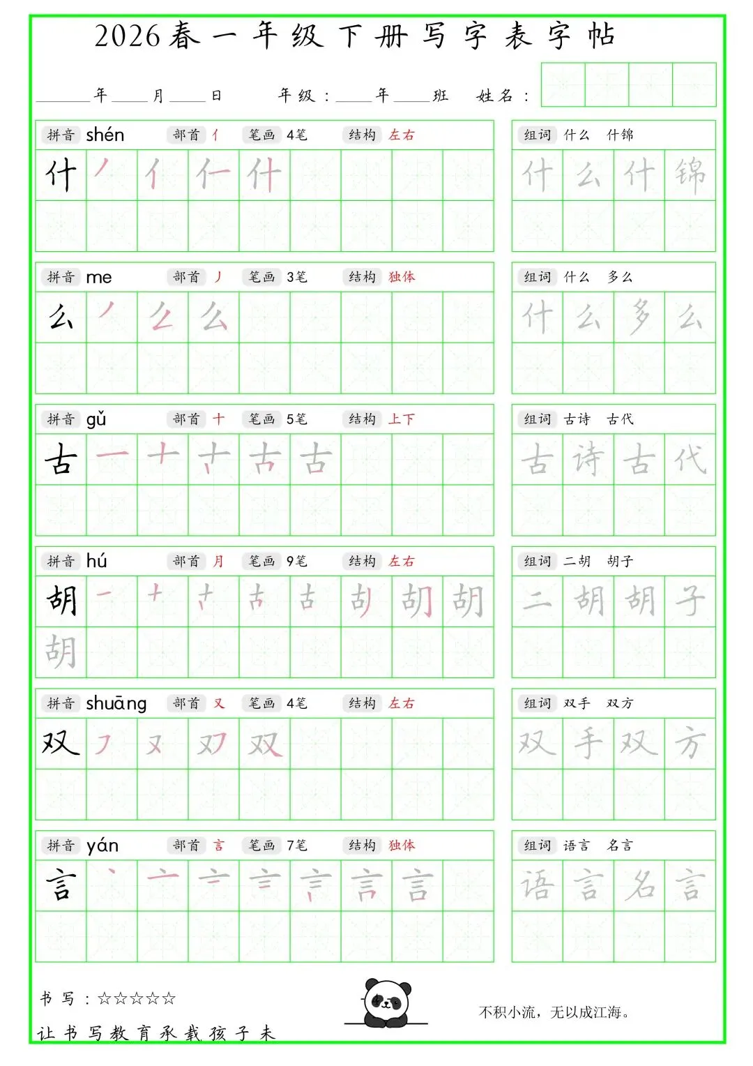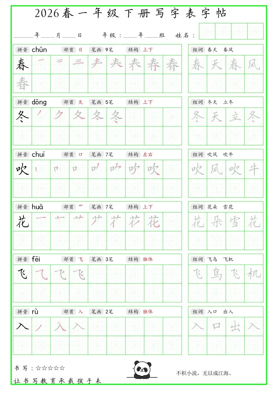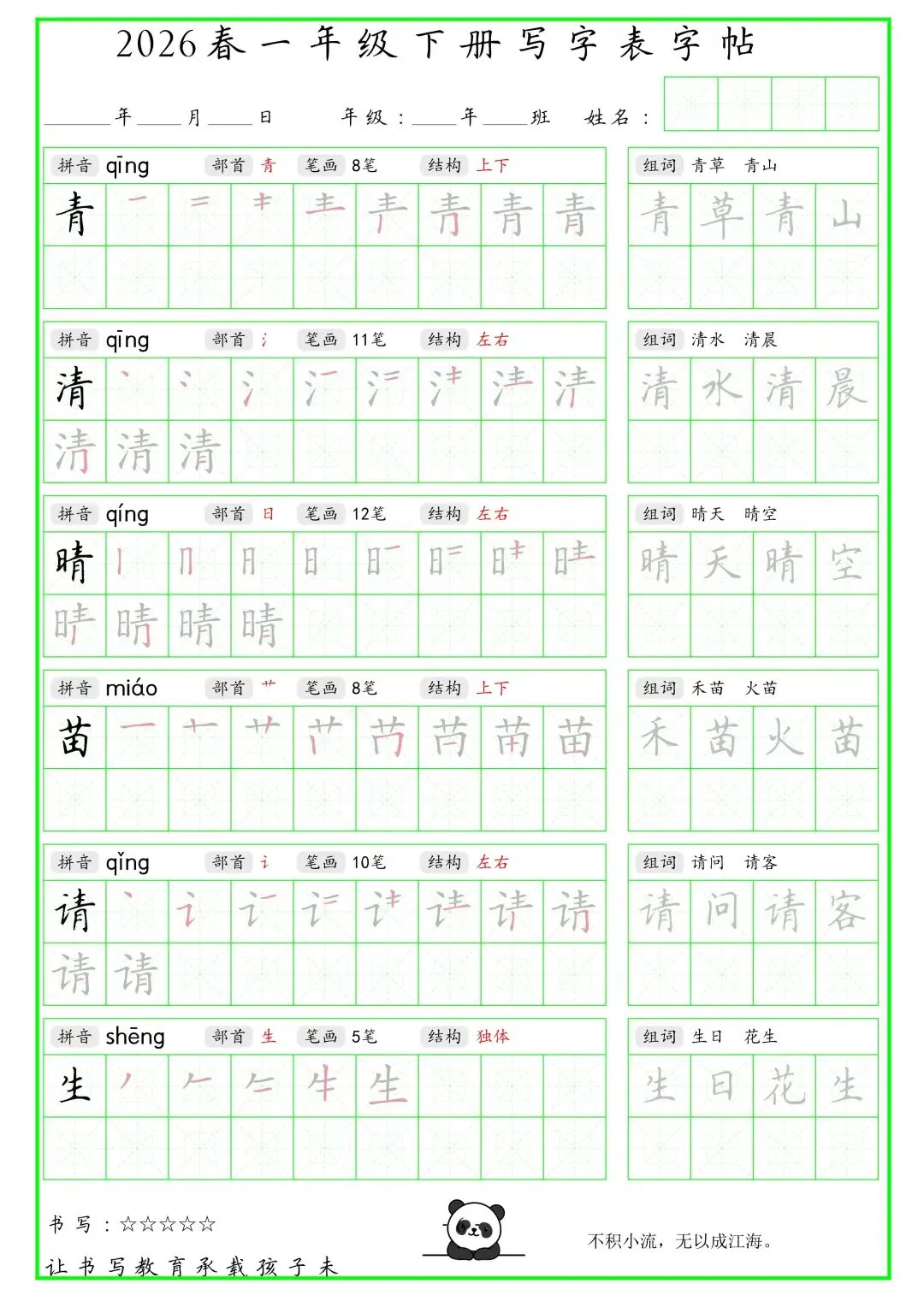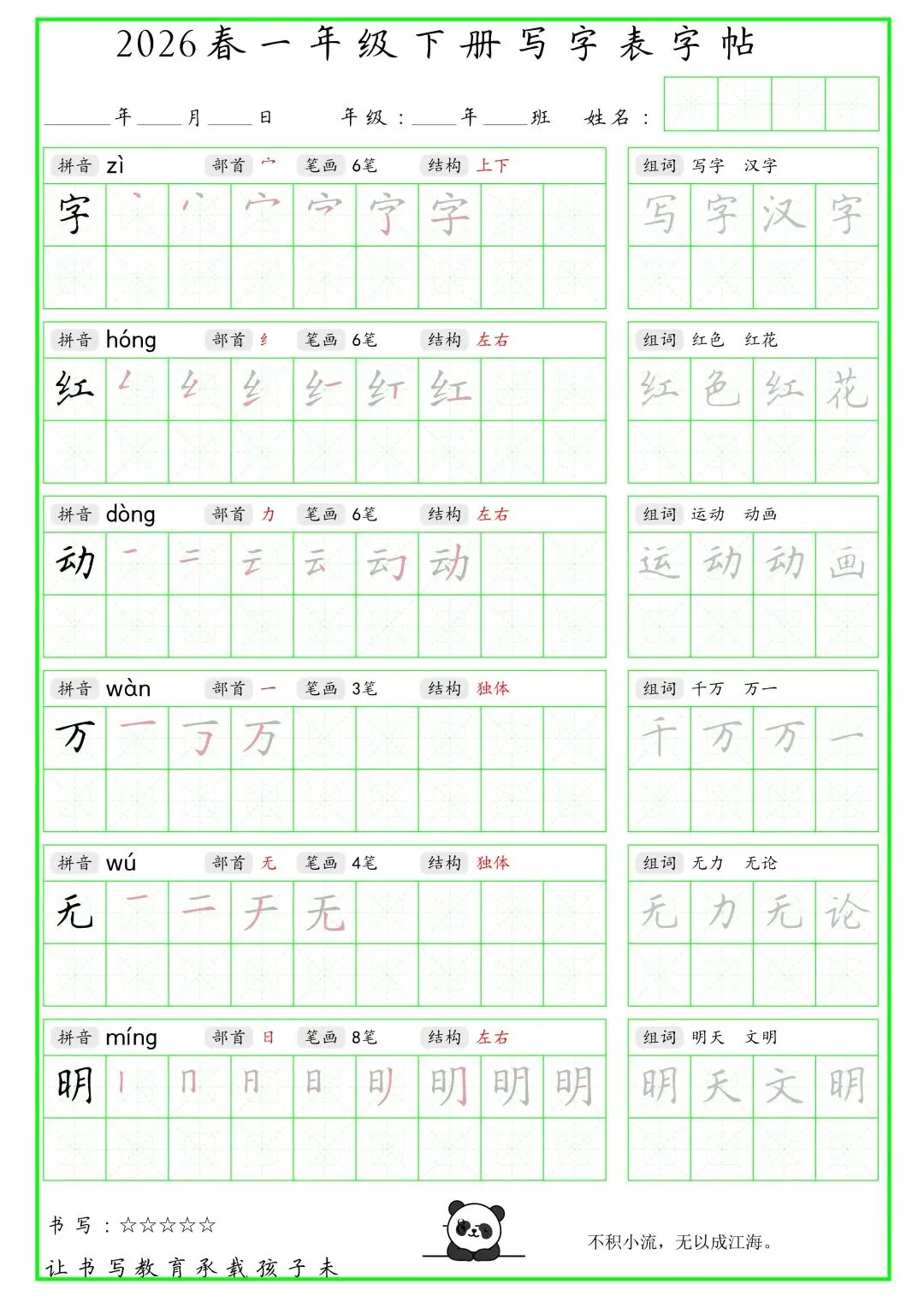 《写字表笔顺组词字帖》