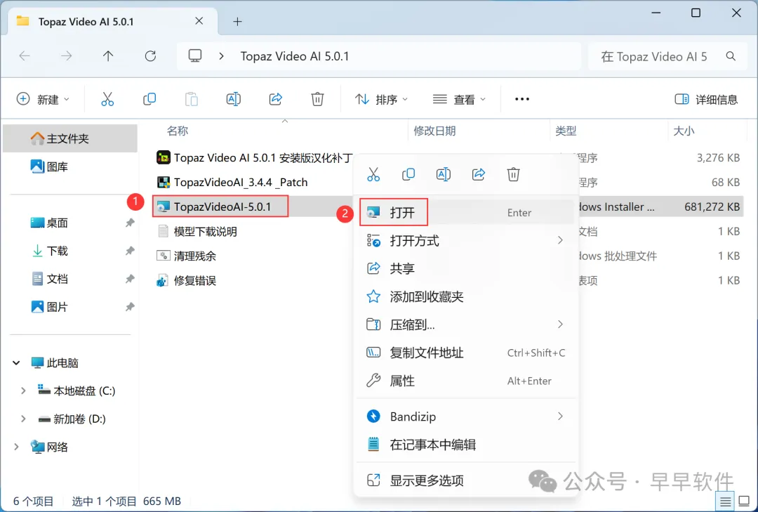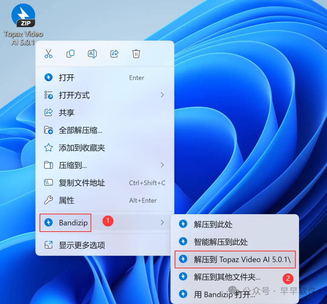 1、下载Topaz Video AI 5.0.1软件安装包到电脑上,右键选择【解压到Topaz Video AI 5.0.1\】