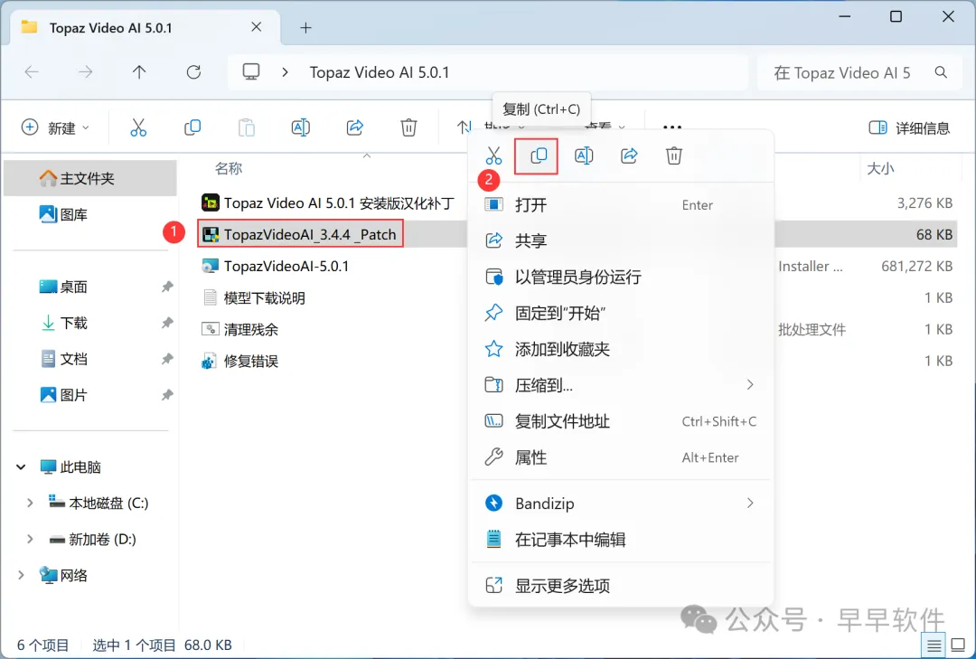 16、回到Topaz Video AI 5.0.1文件夹,找到【TopazVideoAI_Patch】文件,右键点击【复制按钮】