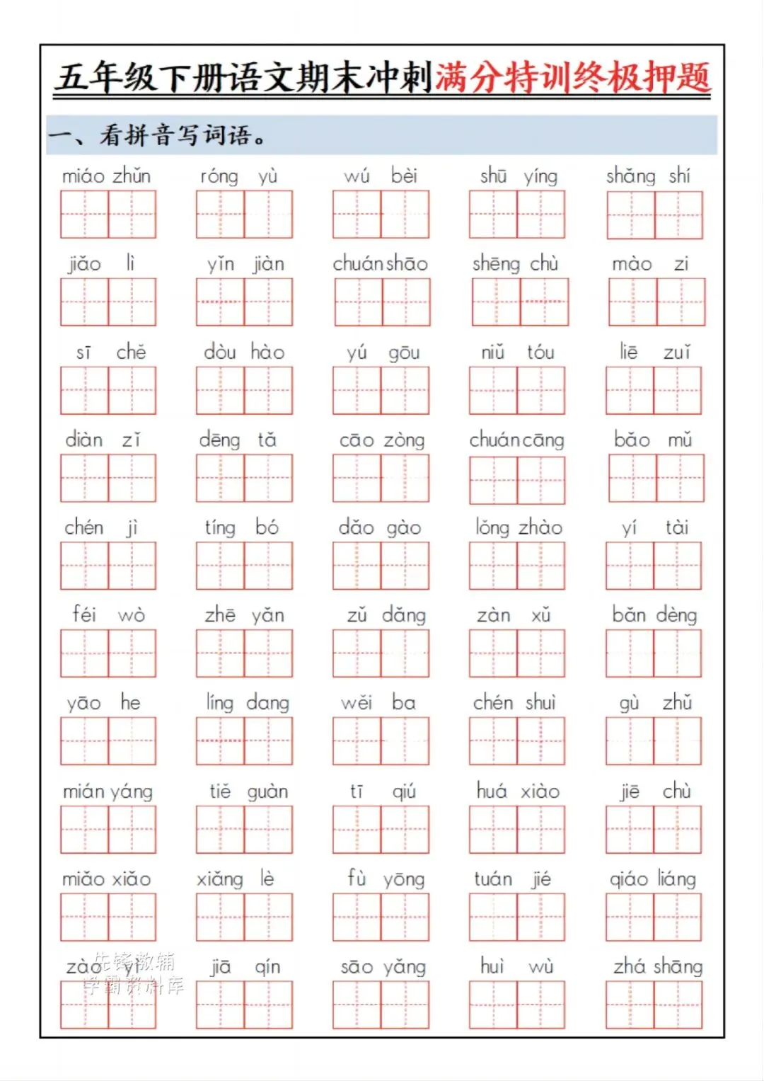 【免费下载】五年级(下)语文期末冲刺满分特训终极押题(3)