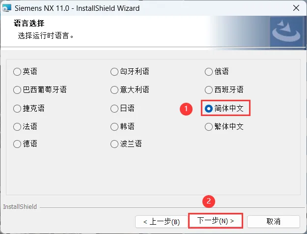 23、勾选【简体中文】,再点击【下一步】