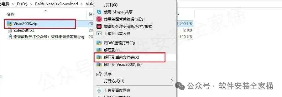 1.打开下载好的软件安装包,鼠标右击压缩包选择【解压到当前文件夹】。