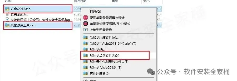 1.打开下载好的软件安装包,鼠标右击压缩包选择【解压到当前文件夹】。