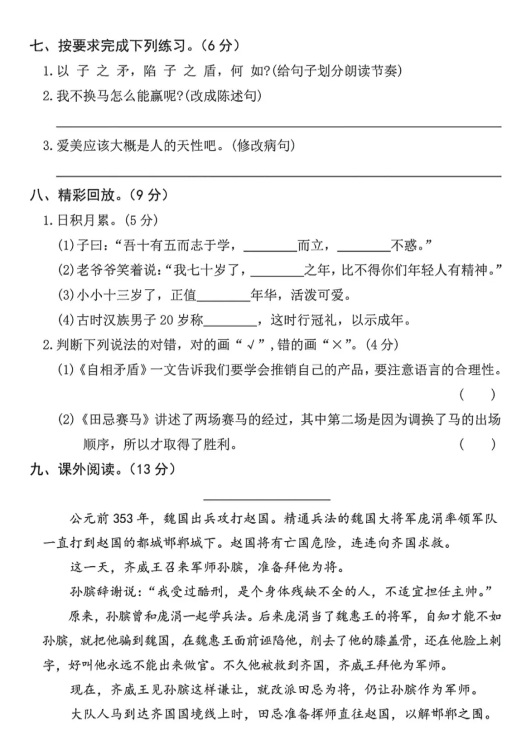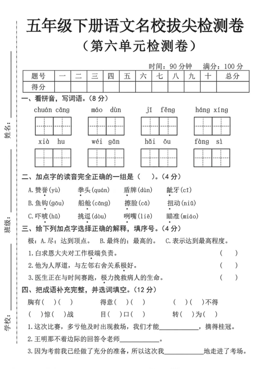 五年级(下)语文 第六单元名校拔尖检测卷