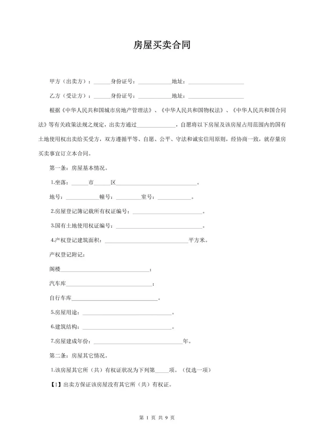 房屋买卖合同