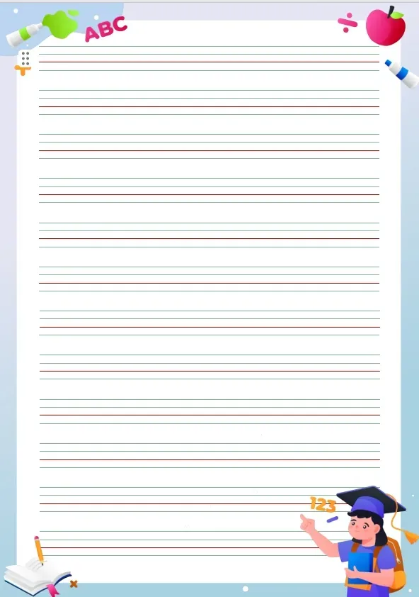 今天要和大家分享的资料是英语四线三格纸,这些四线三格都有漂亮的模板哦!如果平时班级里举办英语书写比赛,可以彩色打印这些空白纸。一起来看看吧!