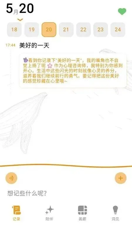 2、情绪日记:用户可随时记录每日情绪变化、生活事件及内心感受,通过长期记录形成个人情绪档案,还能通过分析功能发现情绪规律和潜在问题。