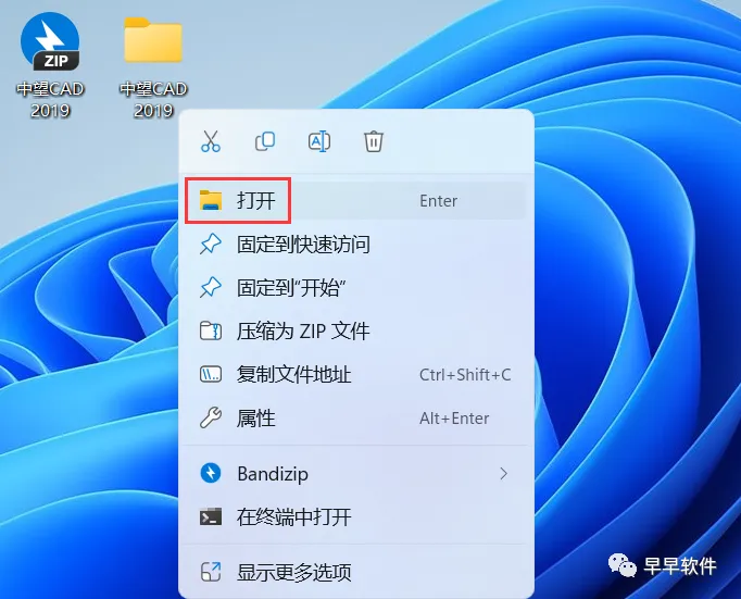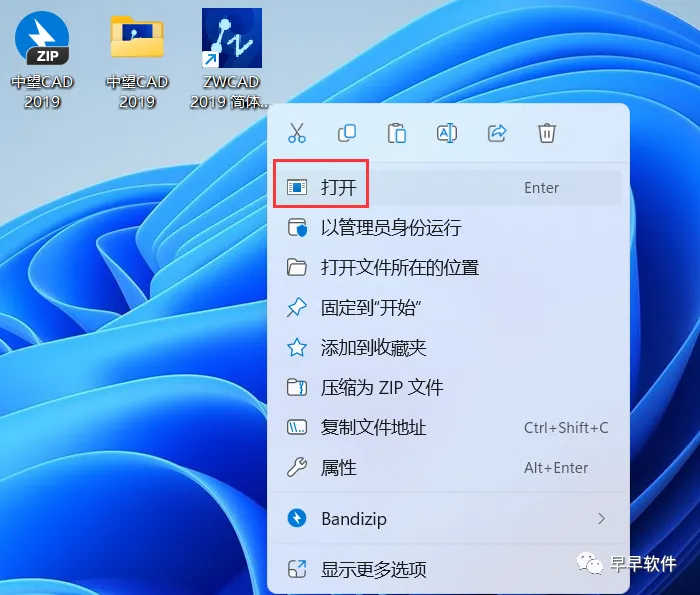 12、回到桌面,右键桌面上的【ZWCAD 2019软件图标】,点击【打开】