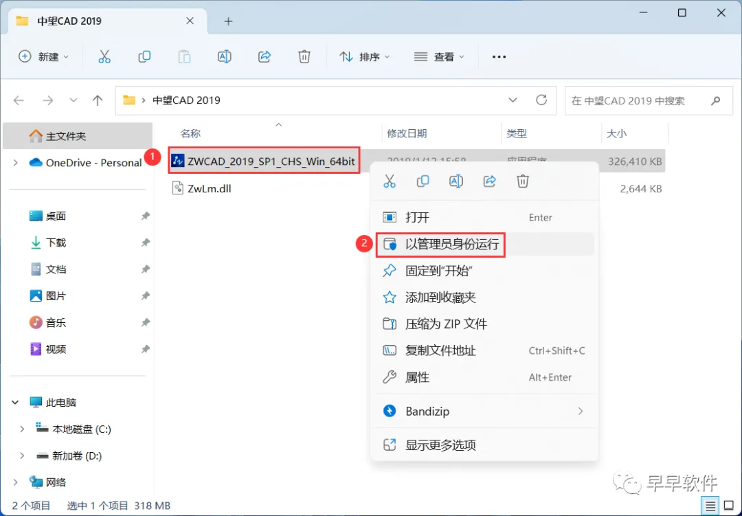 1、下载中望CAD 2019软件安装包到电脑上,右键选择【解压到中望CAD 2019\】