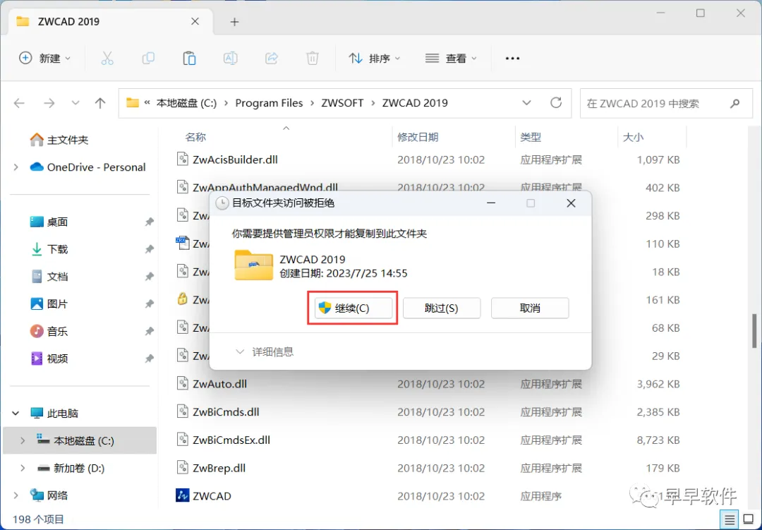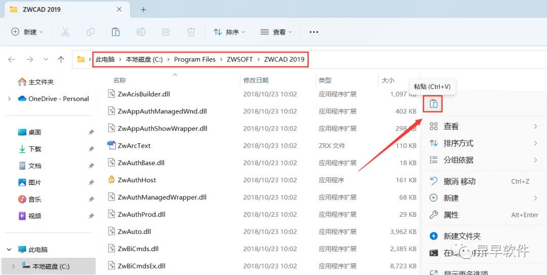 8、回到中望CAD 2019文件夹,找到【Zwlm.dll】文件,再右键点击【复制按钮】