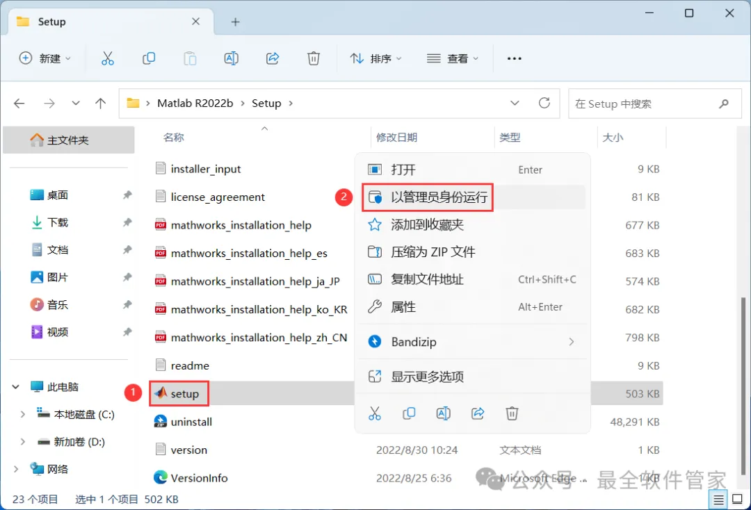 4、找到【setup】应用程序,右键选择【以管理员身份运行】它