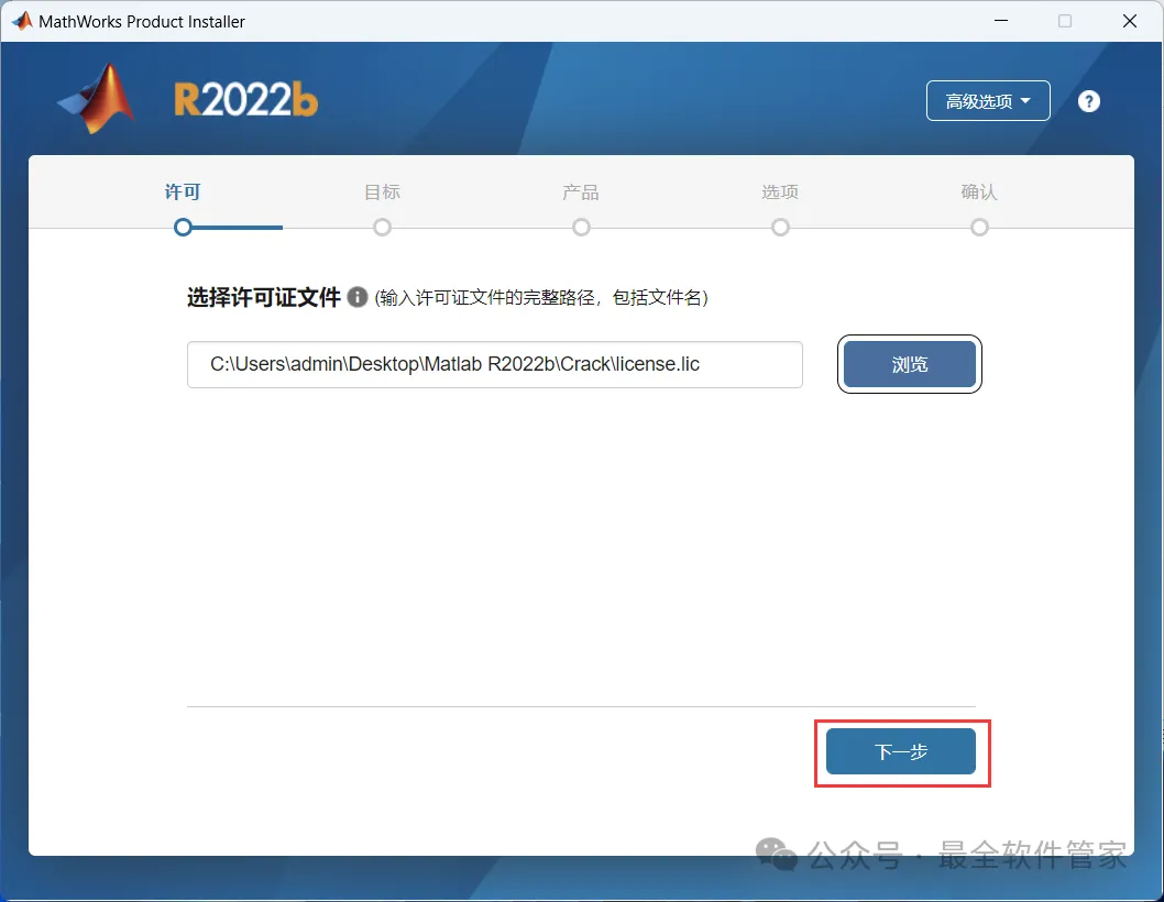 5、依次点击【高级选项】、【我有文件安装密钥】