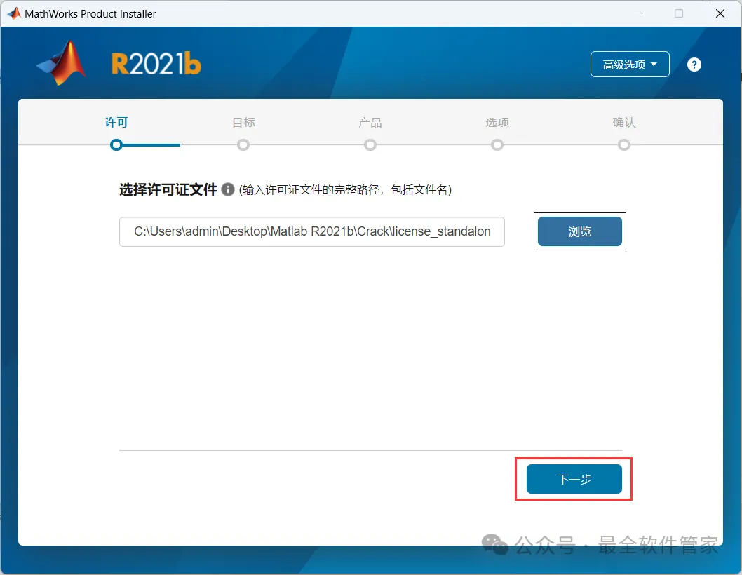27、勾选【输入许可证文件…】,再点击【浏览】