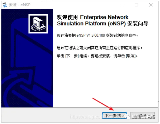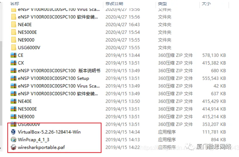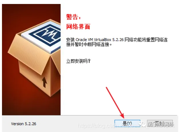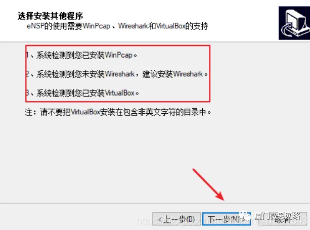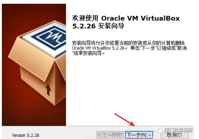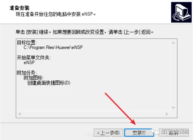 2.下面我们开始安装VirtualBox5.2.26并默认安装点击安装,这边位置你自己选选择系统盘或者其他盘都可以ENSP安装,打开图中标识的文件夹找到eNSP_Setup安装包,以管理员方式打开,选择语言,点击确定
