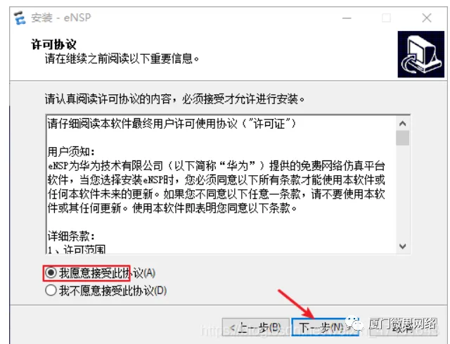 点击我愿意接受协议,点击下一步